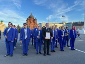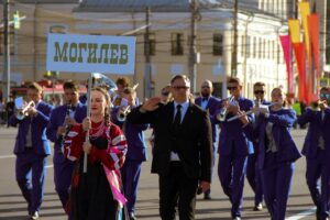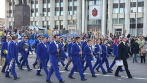 Вот они вступают на площадь Ленина — и начинается потрясающий концерт — шоу под открытым небом. В этом году уже по традиции Республику Беларусь представлял наш Городской духовой оркестр под руководством Александра Николаевича Городкова.