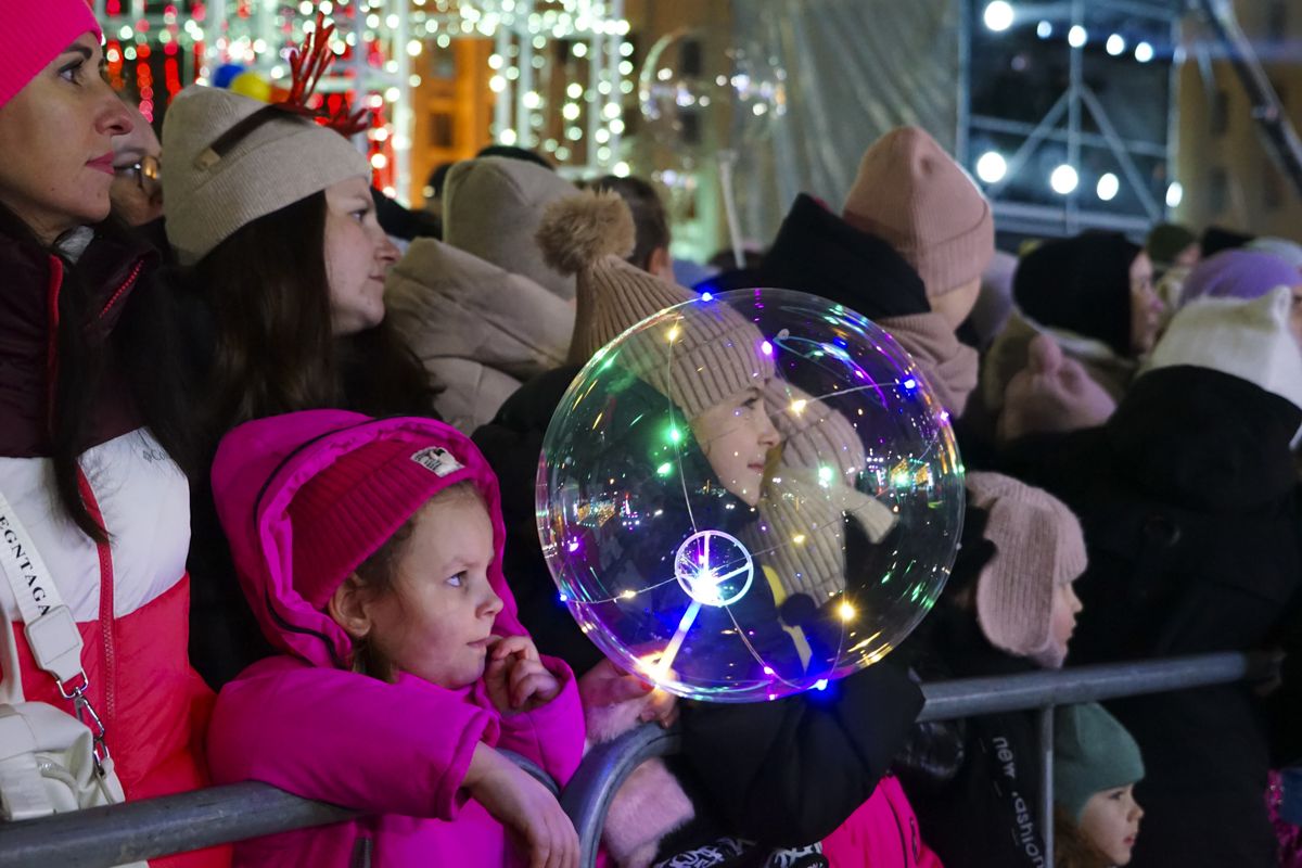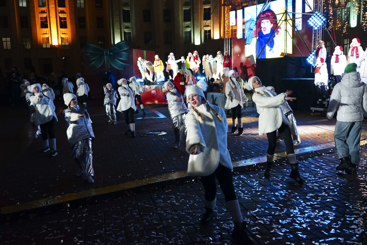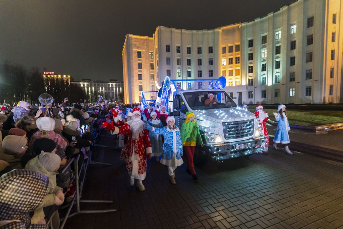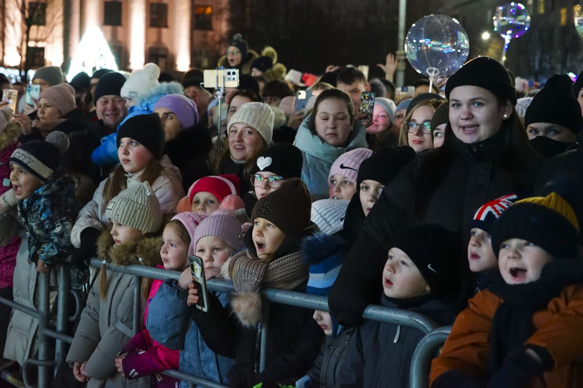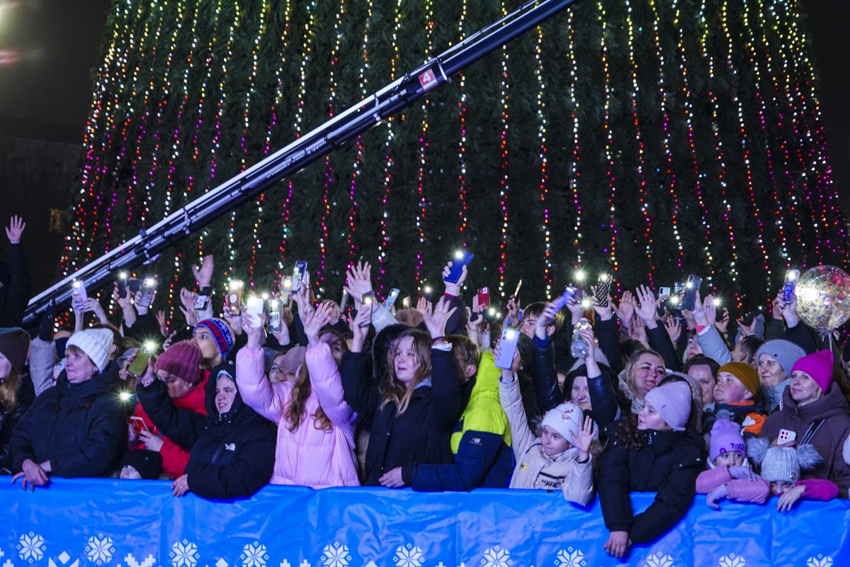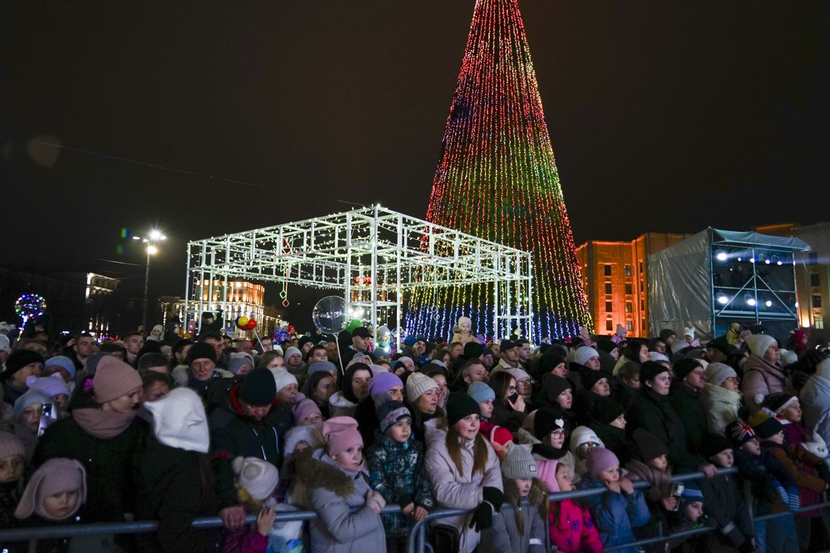 На площади Ленина в Могилеве состоялось зажжение огней на главной елке области. Дед Мороз и Снегурочка традиционно поздравили жителей региона с наступающими праздниками, подарив атмосферу радости и единства. Под радостные возгласы и овации 30-метровая новогодняя красавица окрасилась яркими лампочками и огоньками.