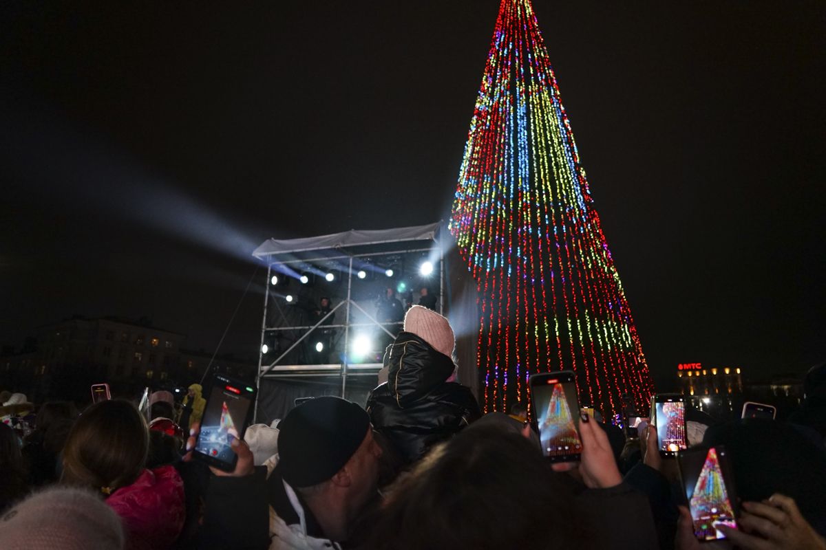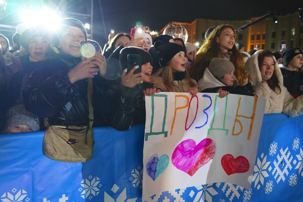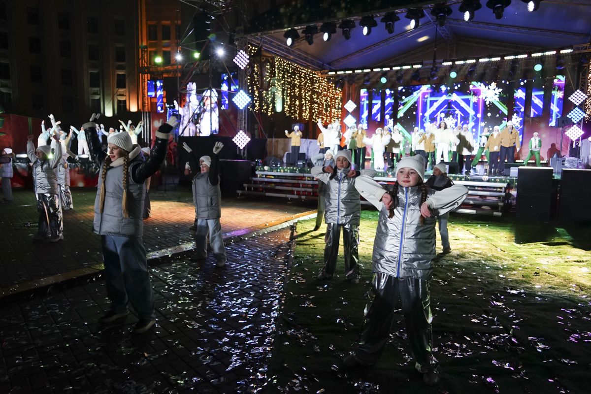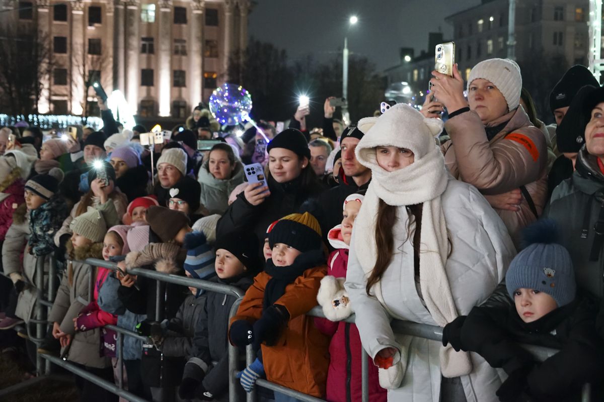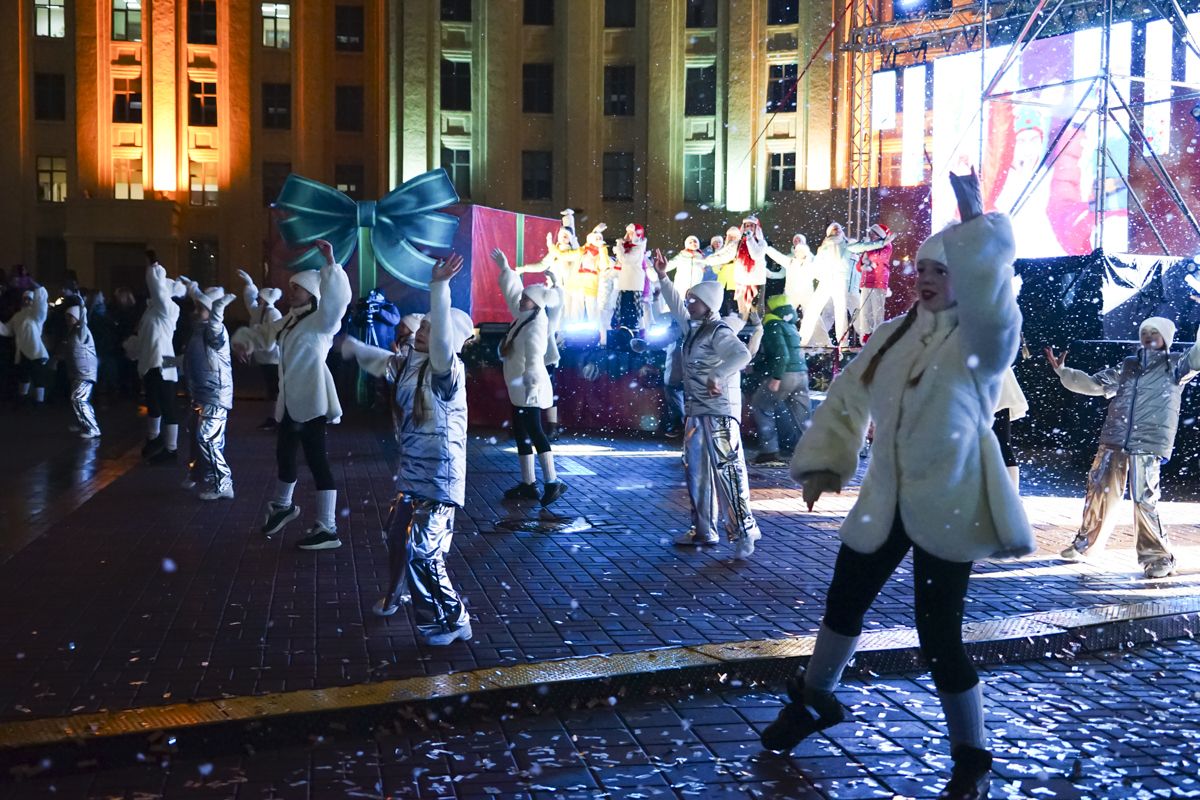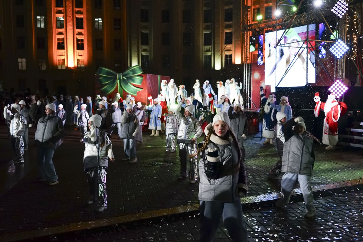 На площади Ленина в Могилеве состоялось зажжение огней на главной елке области. Дед Мороз и Снегурочка традиционно поздравили жителей региона с наступающими праздниками, подарив атмосферу радости и единства. Под радостные возгласы и овации 30-метровая новогодняя красавица окрасилась яркими лампочками и огоньками.