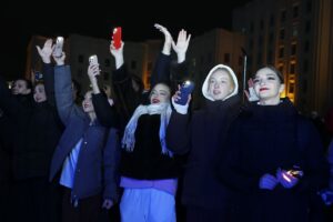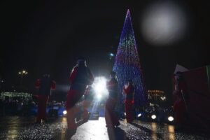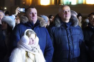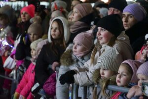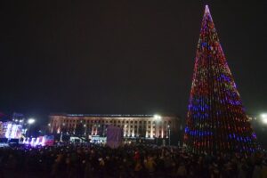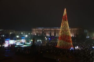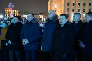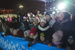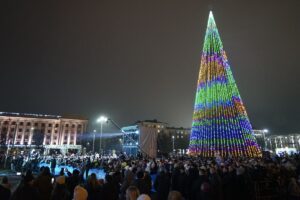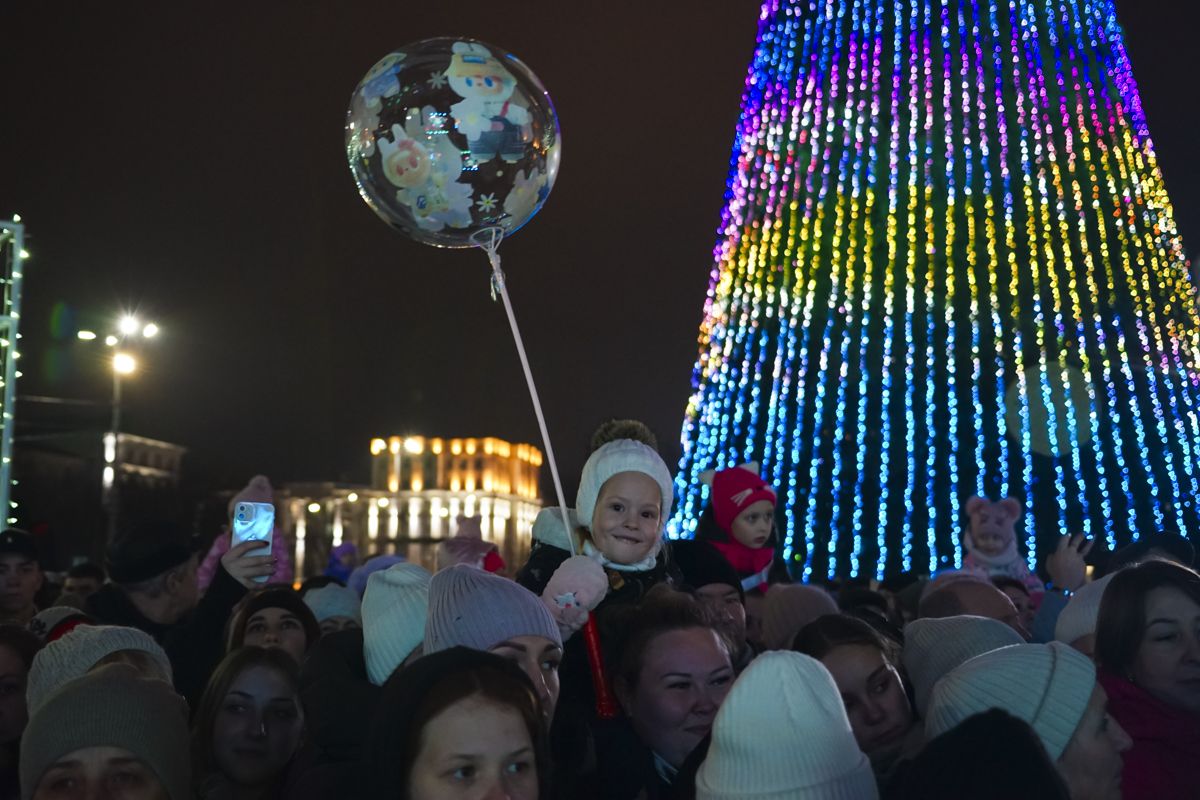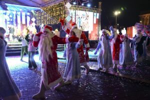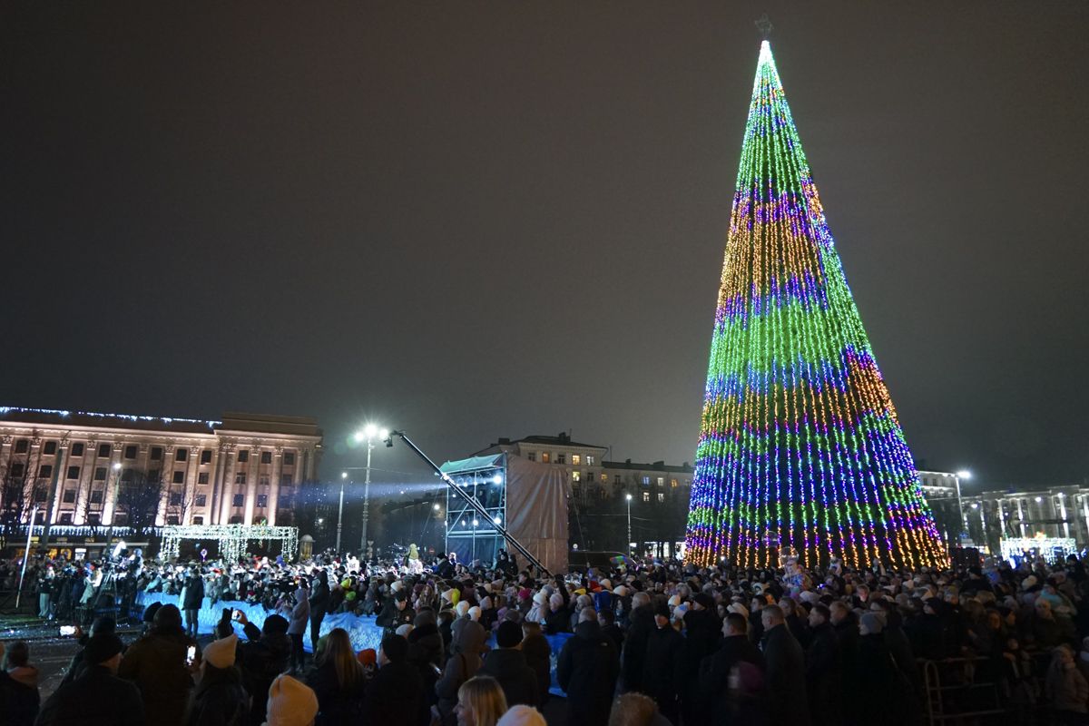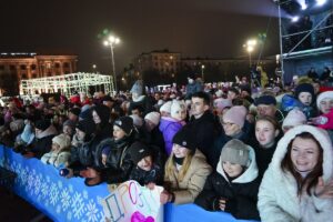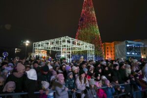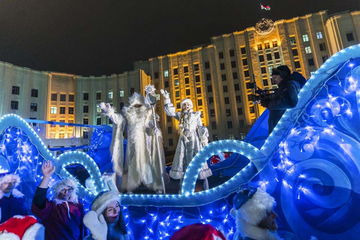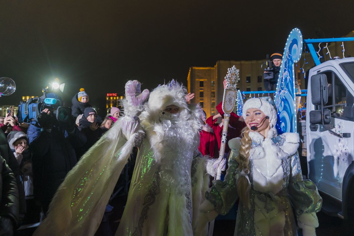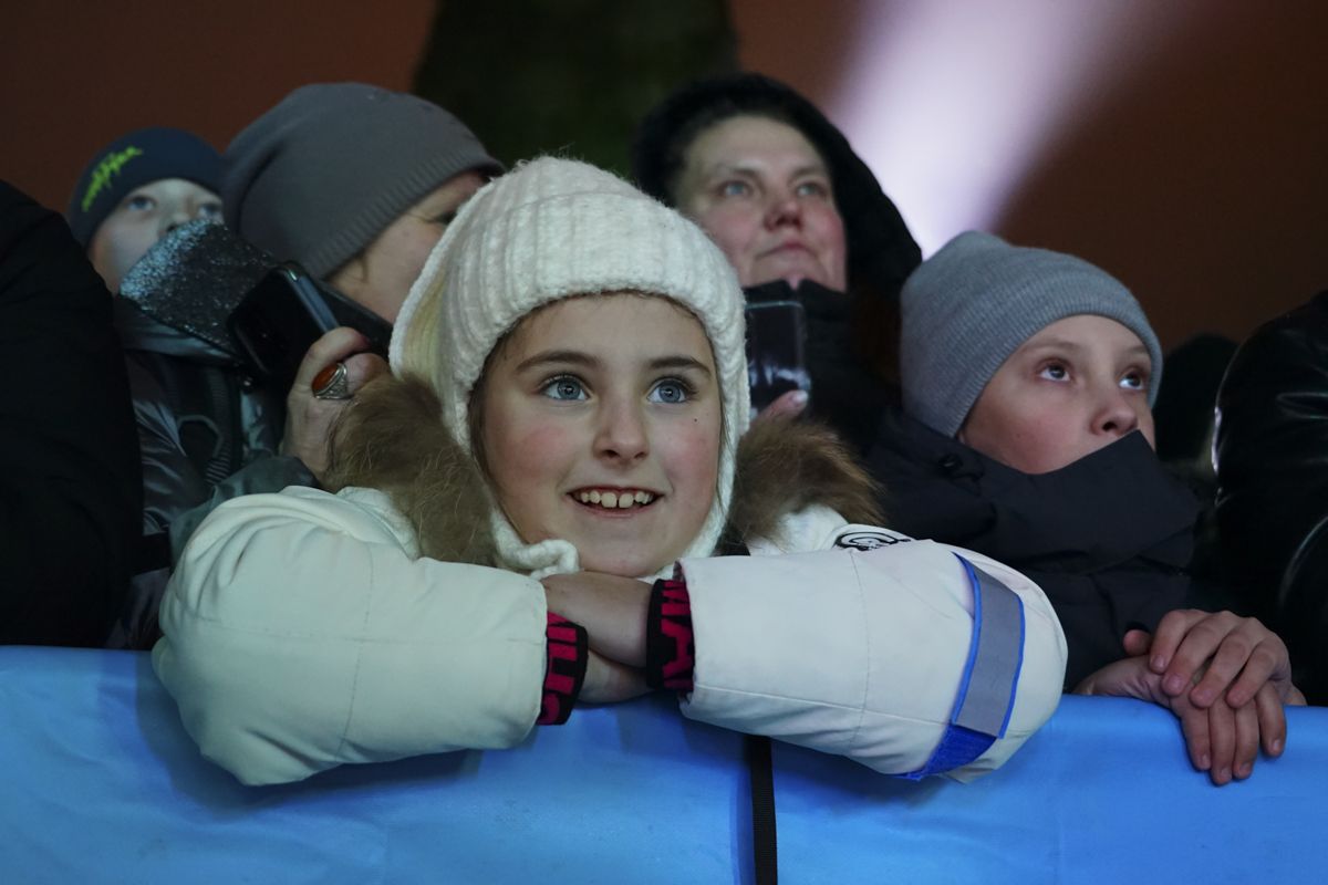 На площади Ленина в Могилеве состоялось зажжение огней на главной елке области. Дед Мороз и Снегурочка традиционно поздравили жителей региона с наступающими праздниками, подарив атмосферу радости и единства. Под радостные возгласы и овации 30-метровая новогодняя красавица окрасилась яркими лампочками и огоньками.