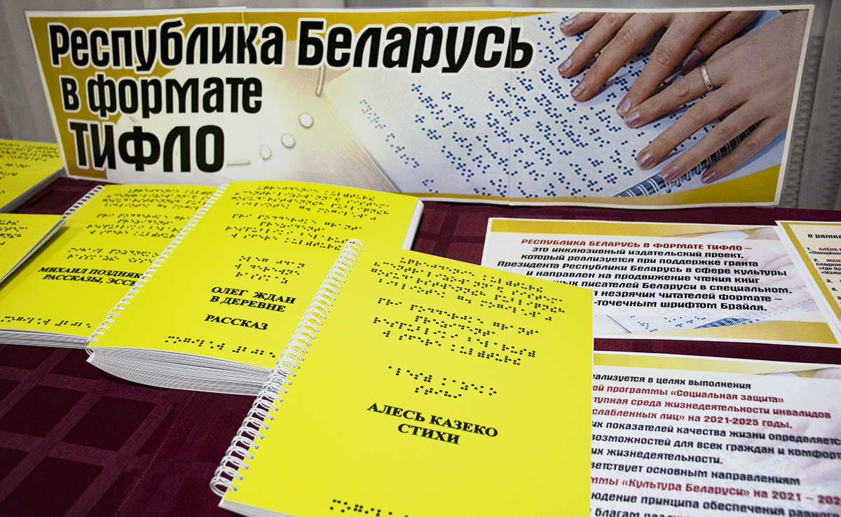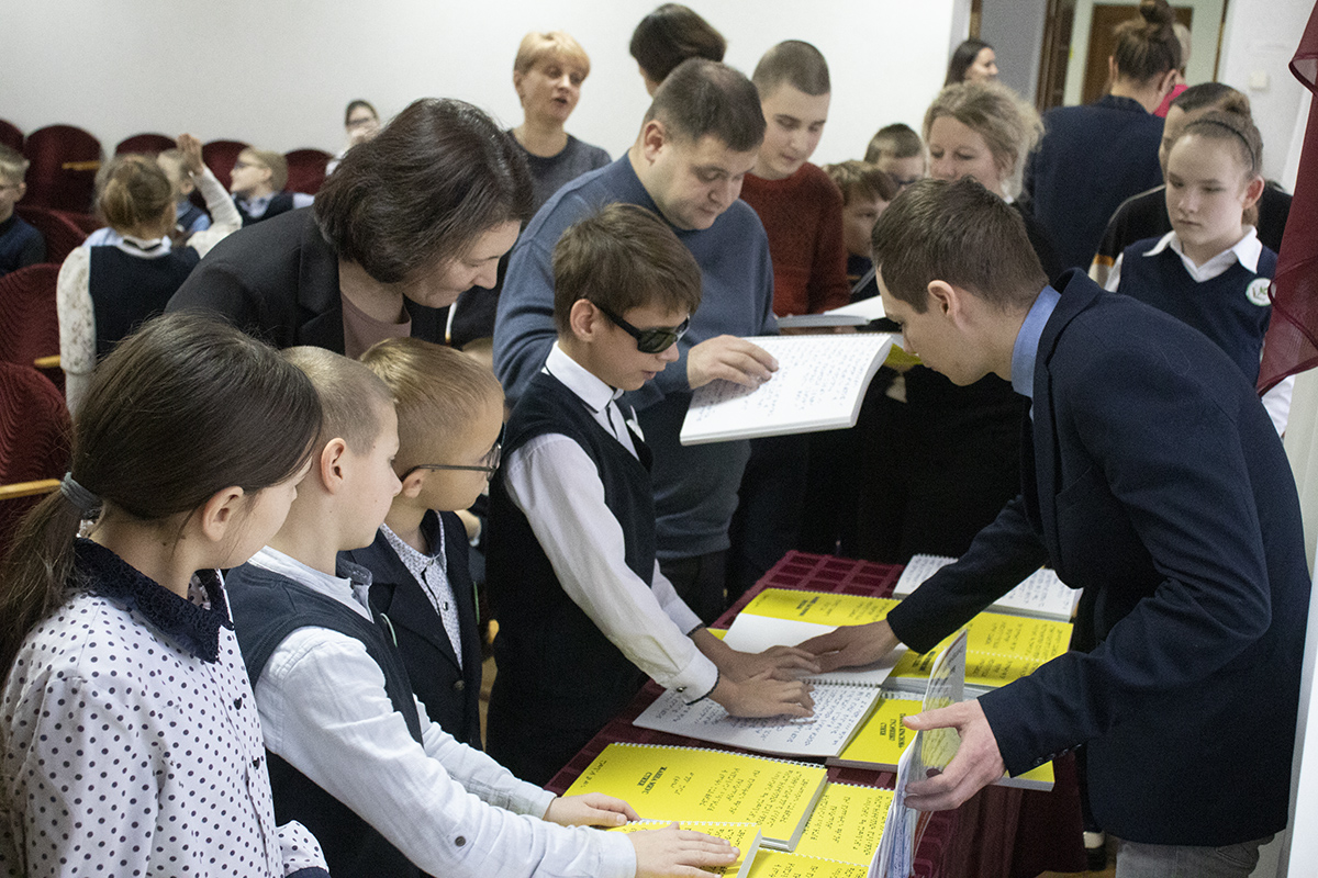 В ходе встречи учащимся школы-интерната были презентованы 22 книги, изданные шрифтом Брайля. Издания были подготовлены в рамках инклюзивного издательского проекта «Республика Беларусь в формате ТИФЛО», реализованного при поддержке гранта Президента Республики Беларусь в сфере культуры. Ребята с большим интересом рассматривали книги и с увлечением читали представленные произведения.