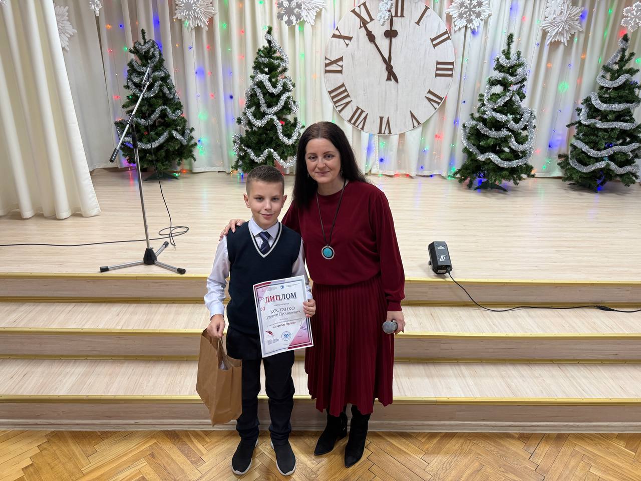 В свою очередь учащиеся продемонстрировали свои творческие способности, подготовив для гостей концерт. Теплый отклик у зрителей вызвало и выступление выпускницы учреждения Натальи Дегтяревой, которая прочитала стихотворение собственного сочинения «Чем пахнет зима?».