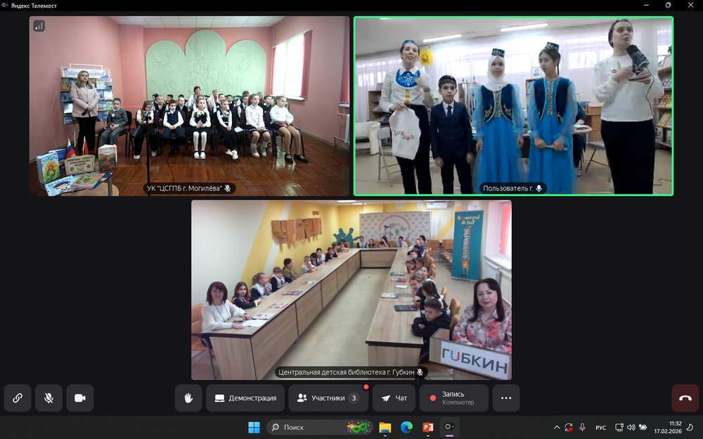 17 февраля на базе детской библиотеки-филиала им. А.С.Пушкина состоялся телемост «Детское чтение объединяет», собравший юных читателей из России и Беларуси. Мероприятие стало ярким примером того, как книга и любовь к чтению стирают расстояния и создают пространство для дружбы и культурного обмена.