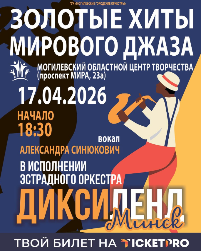 Приглашаем на концерт «Эстрадные хиты мирового джаза» 13.04.2026 Приглашаем на концерт «Эстрадные хиты мирового джаза» эстрадного оркестра «Диксиленд Минск»