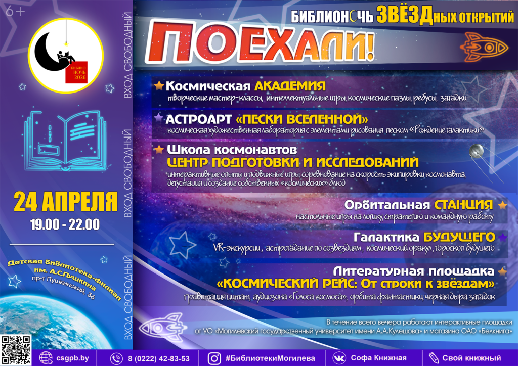 Приглашаем всех могилевчан и гостей города провести этот вечер ярко, познавательно и по-настоящему космически. Приходите всей семьей – откройте для себя Вселенную чтения и увлечений!