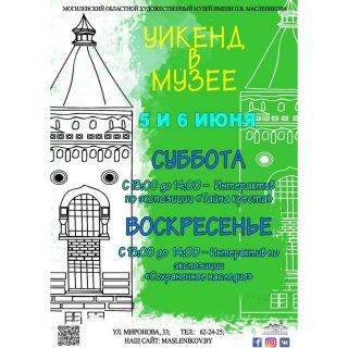 Могилевский областной художественный музей им.П.В. Масленикова приглашает больших и маленьких горожан на «Уикенд в музее» 5-6 июня. Как рассказали в учреждении культуры, 5 июня (суббота) с 13.00 до 14.00 для участников мероприятия состоится...
