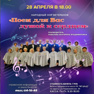 Дорогие друзья! учреждение культуры «Могилевский городской Центр культуры и досуга» приглашает на отчётный концерт «Поем для Вас душой и сердцем» народного хора ветеранов (руководитель — Ковалева Екатерина Владимировна).